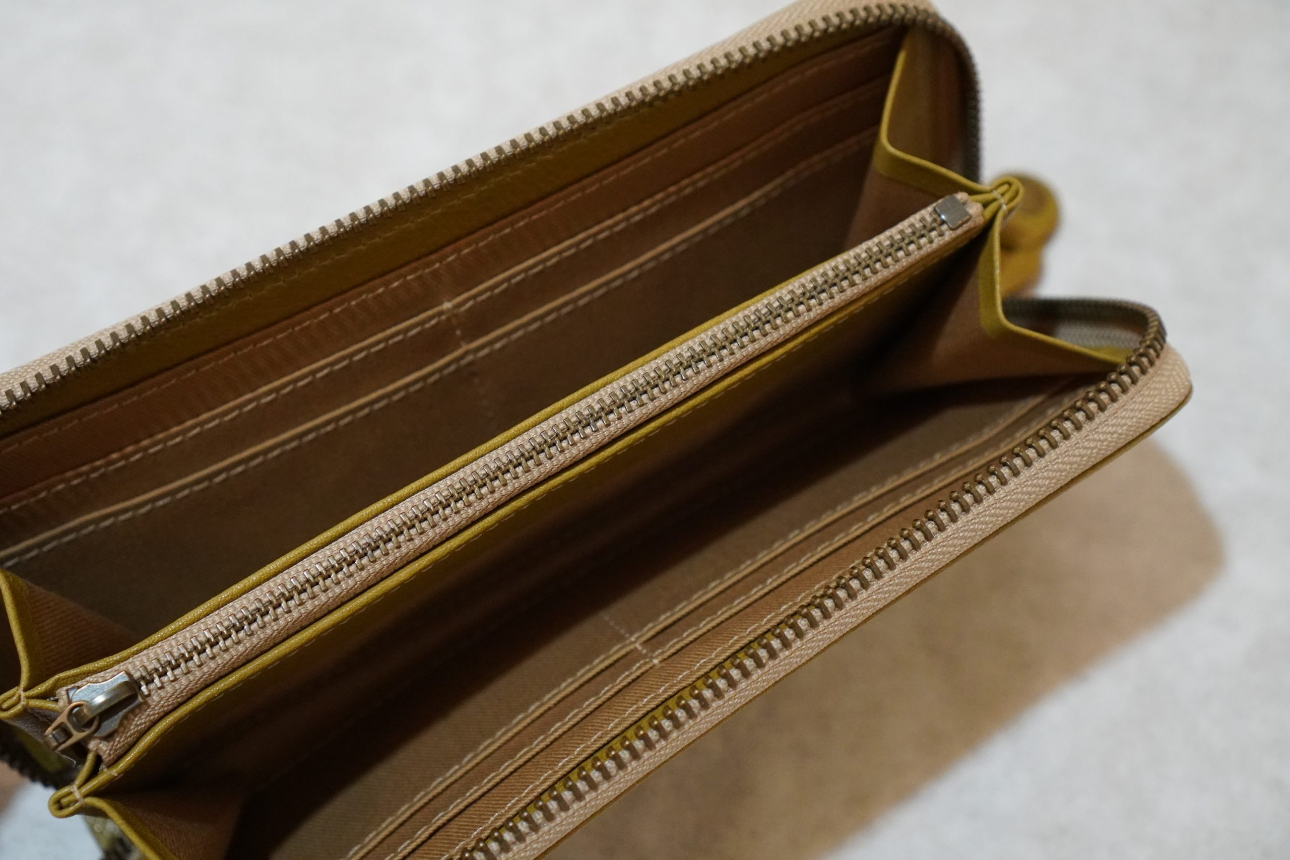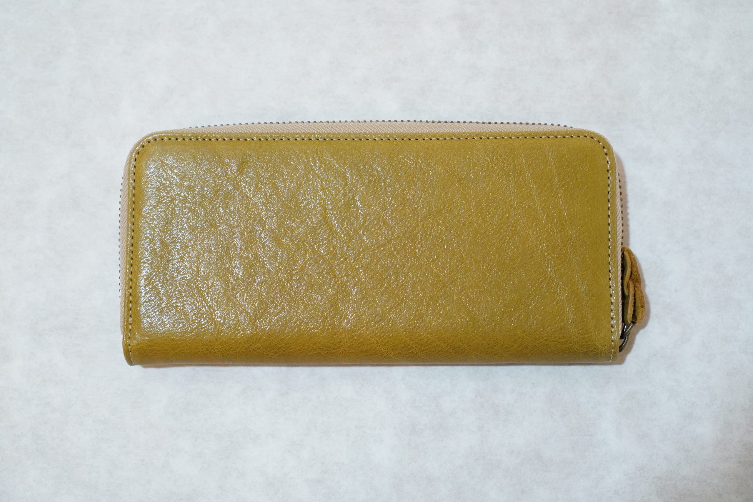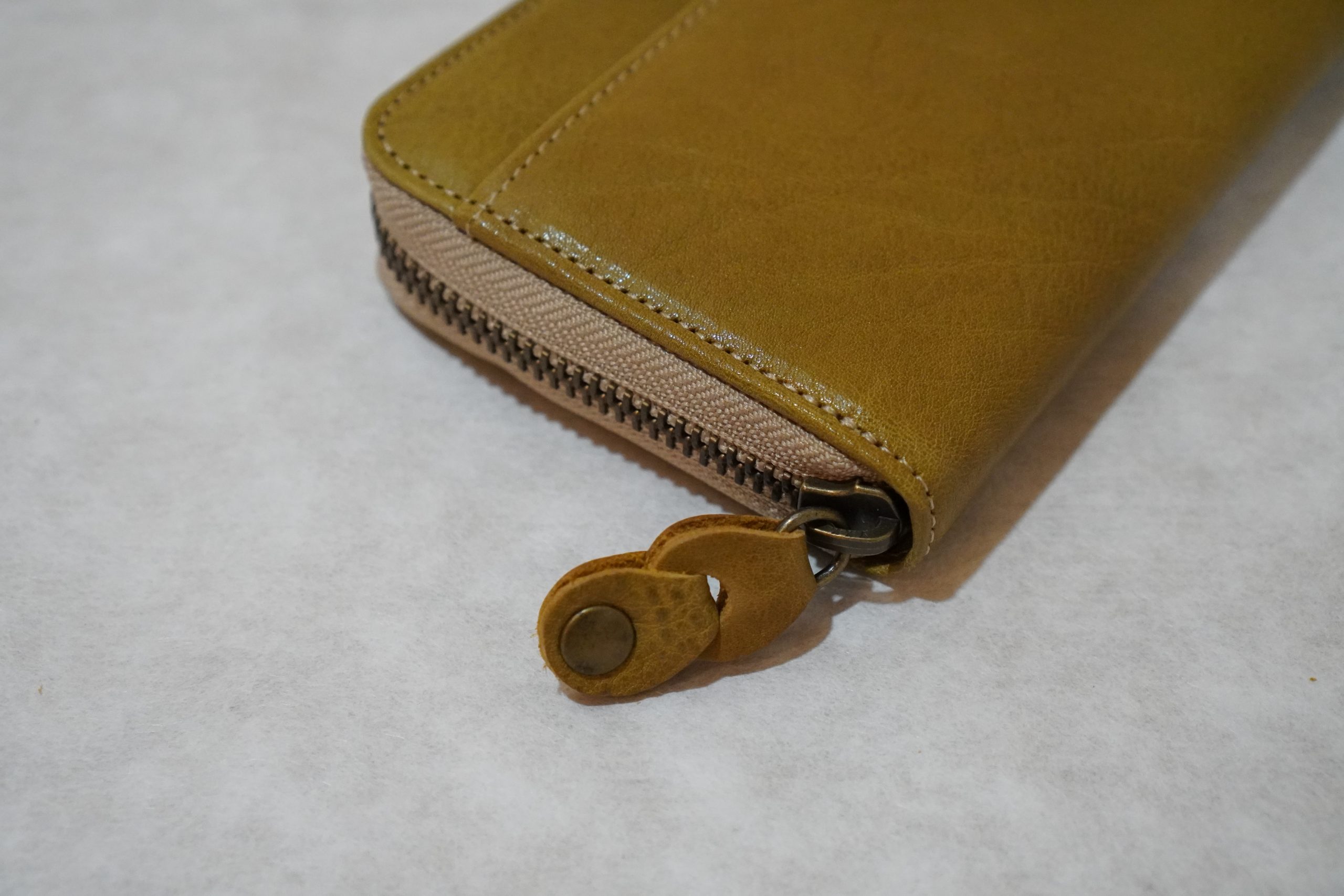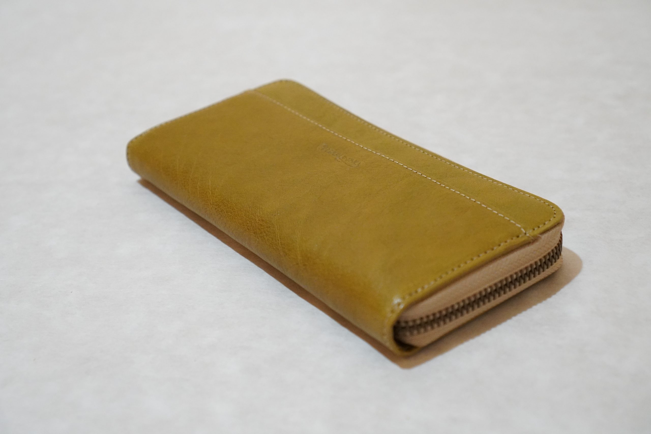 ラウンドファスナー長財布。上質なヌメ革(牛)を使用した手作り商品です。