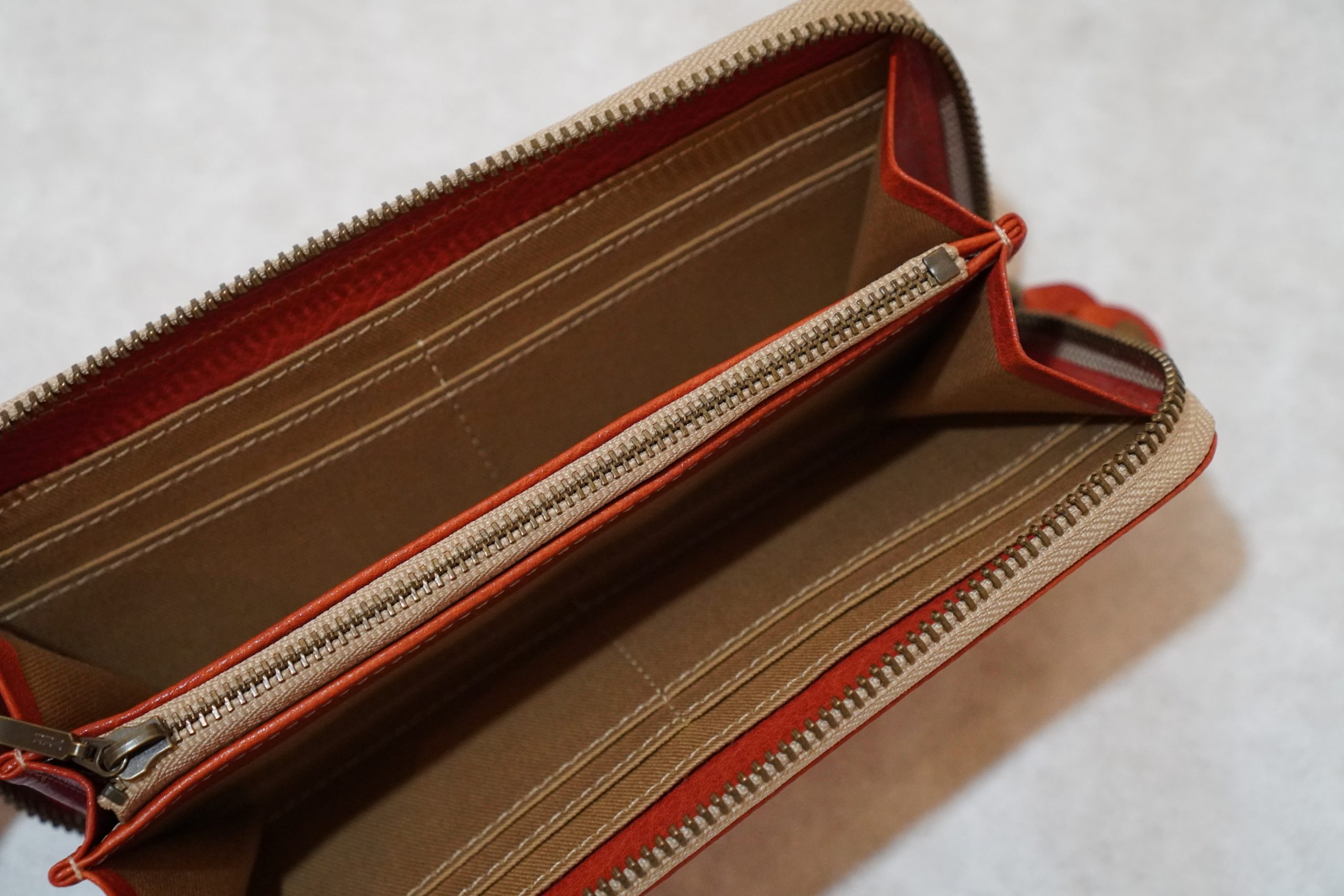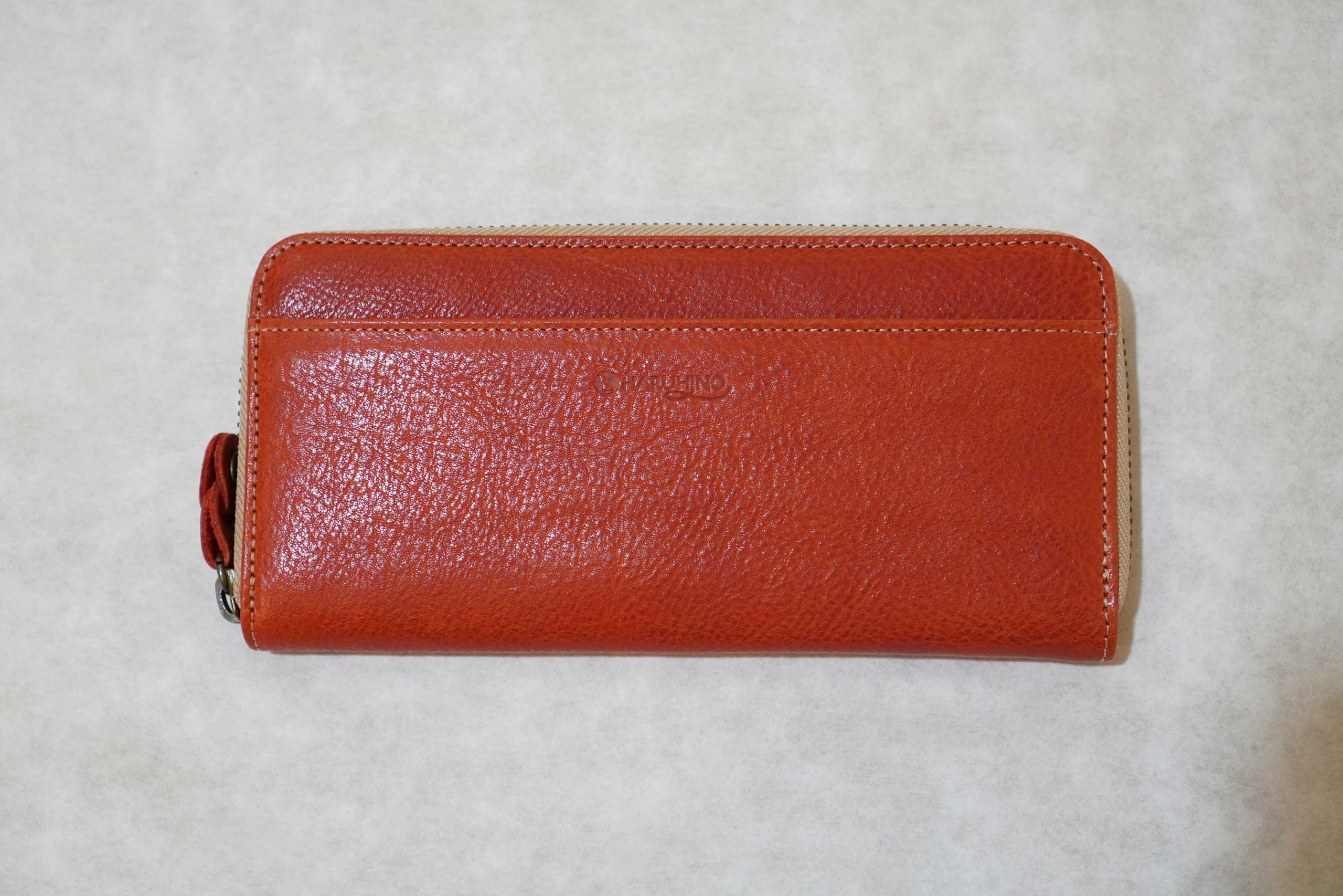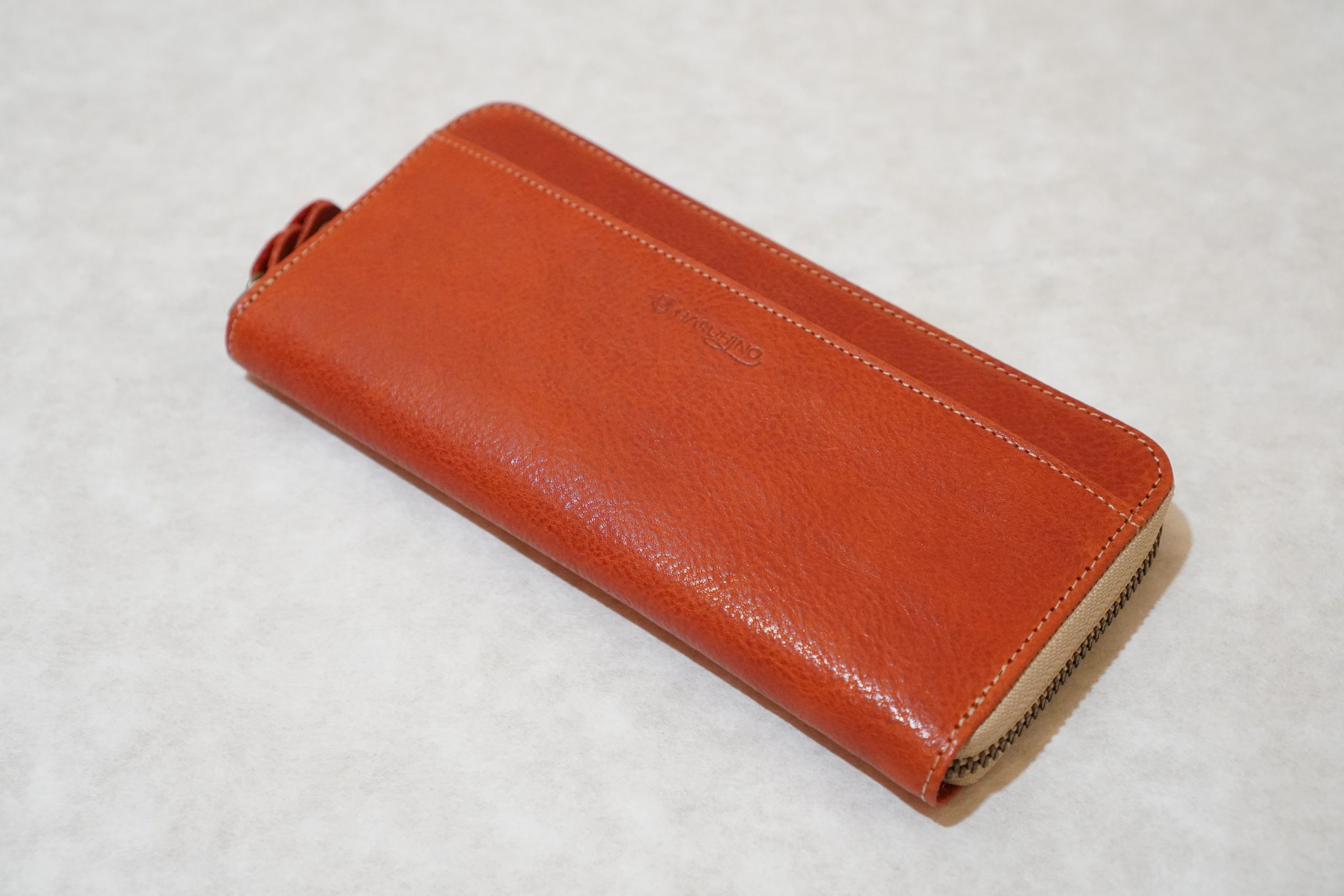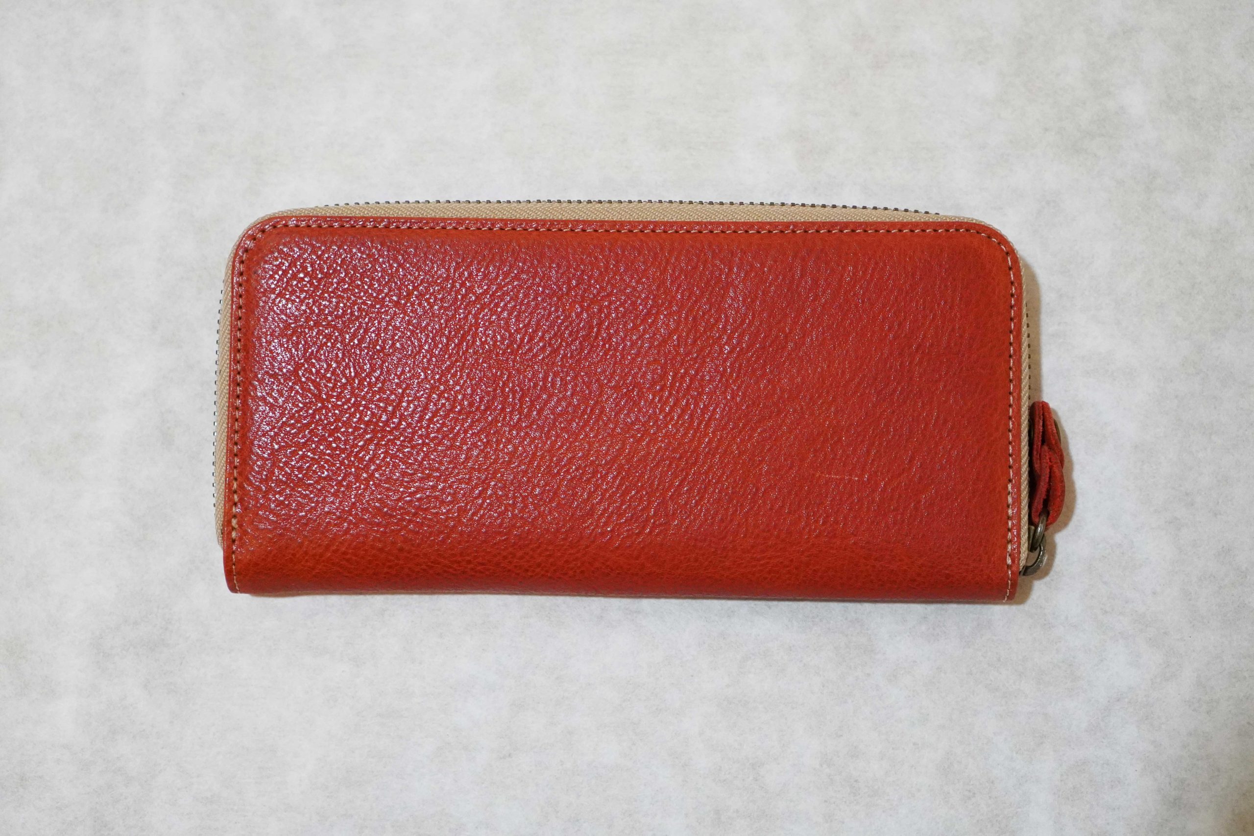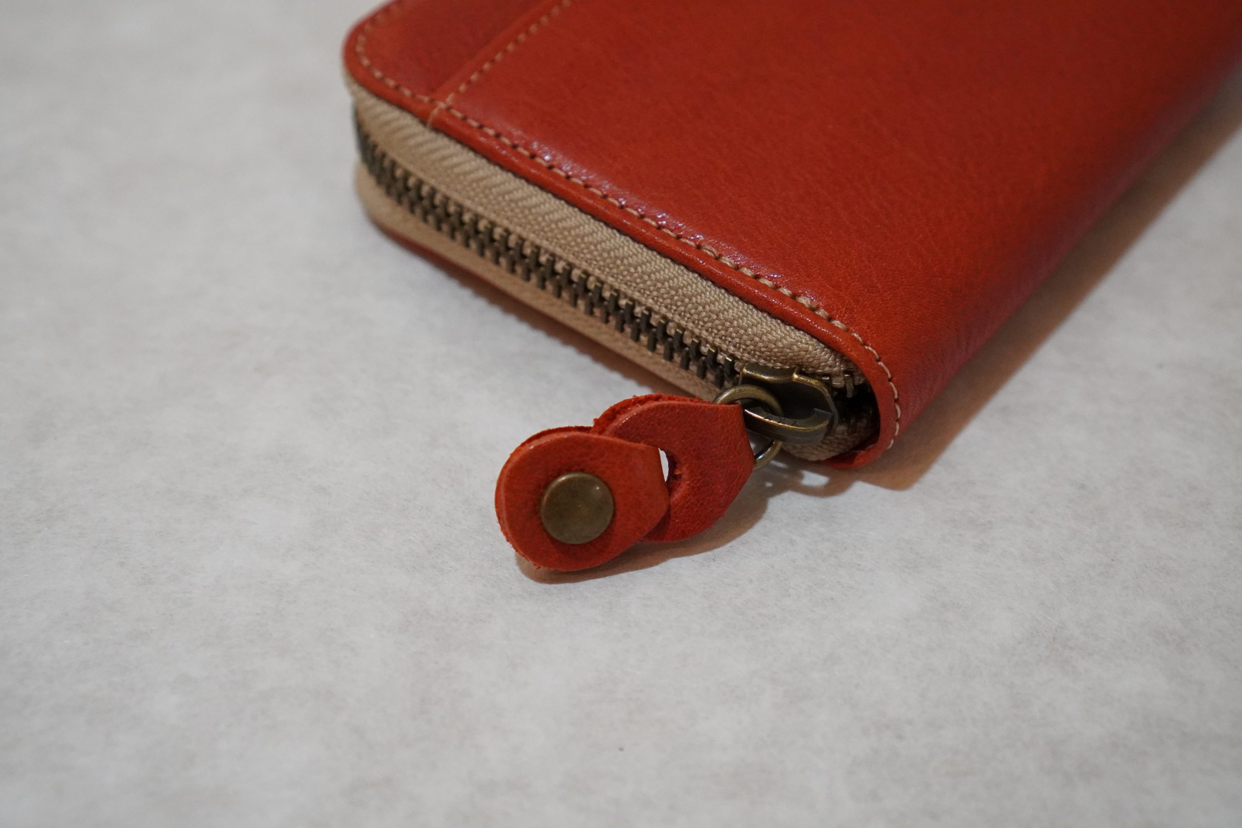 ラウンドファスナー長財布。上質なヌメ革(牛)を使用した手作り商品です。