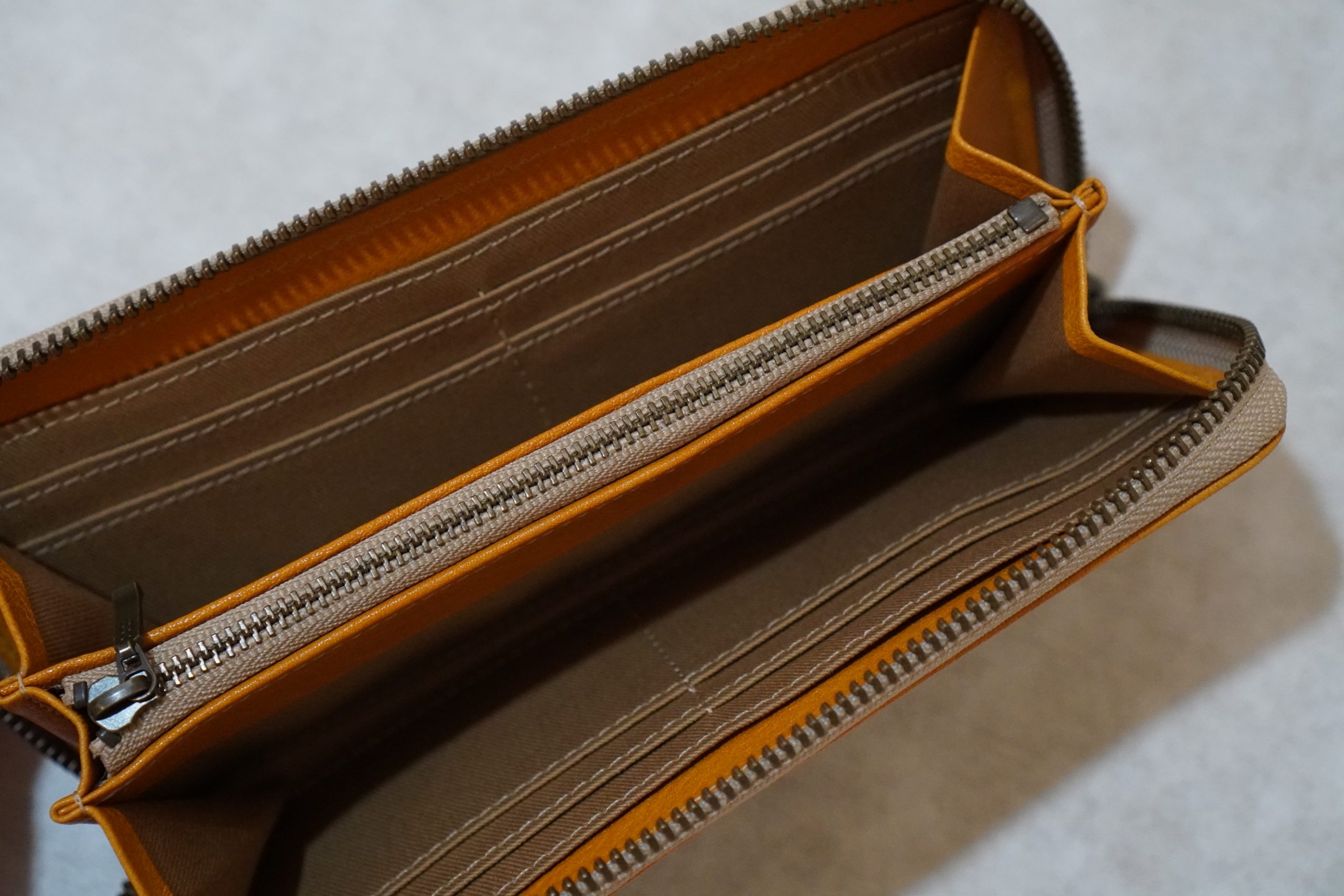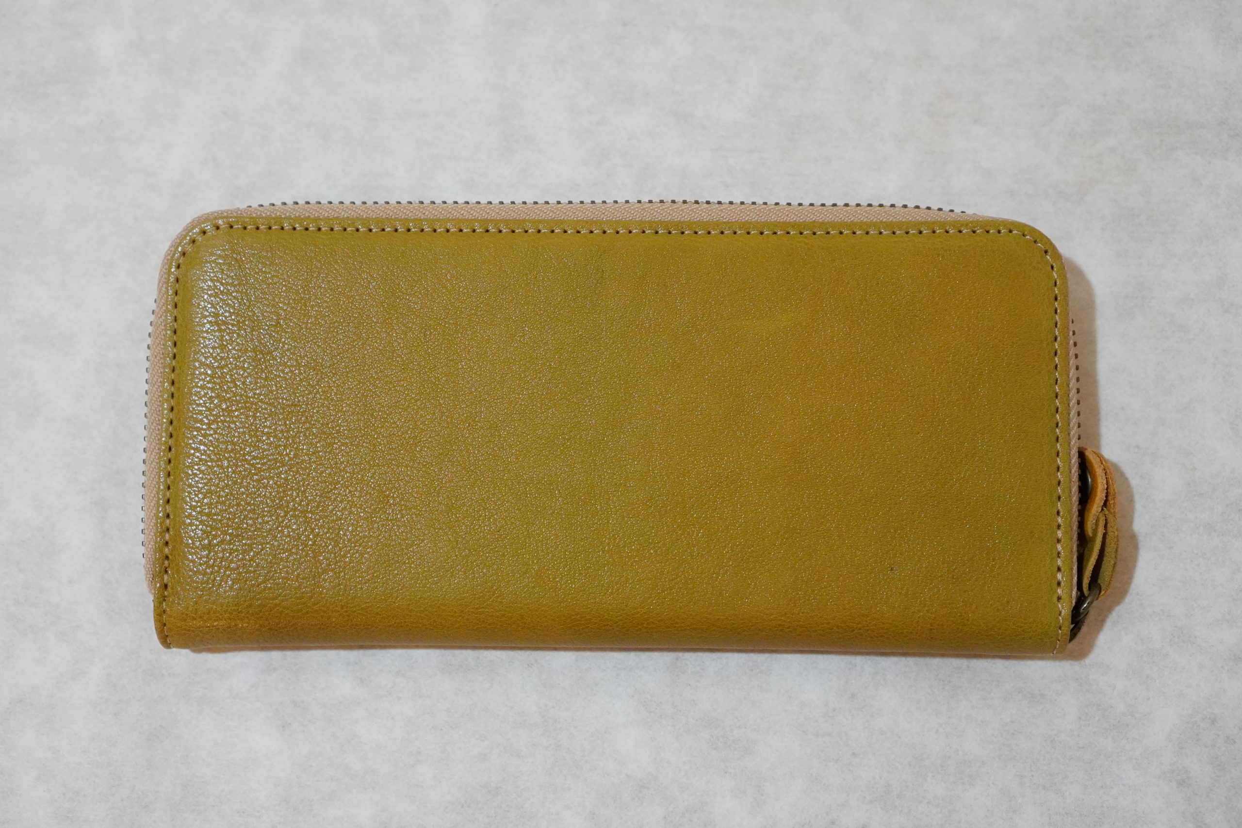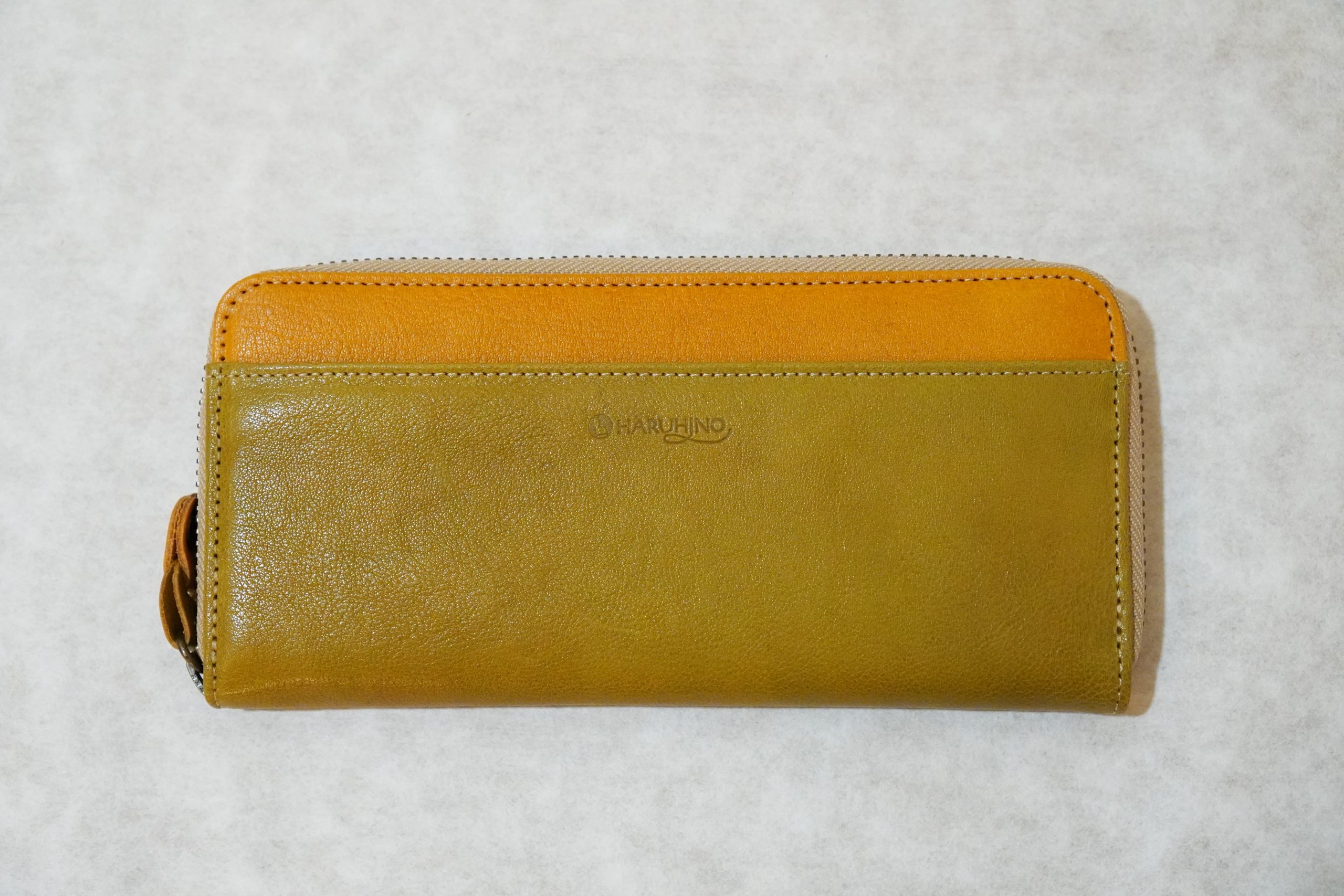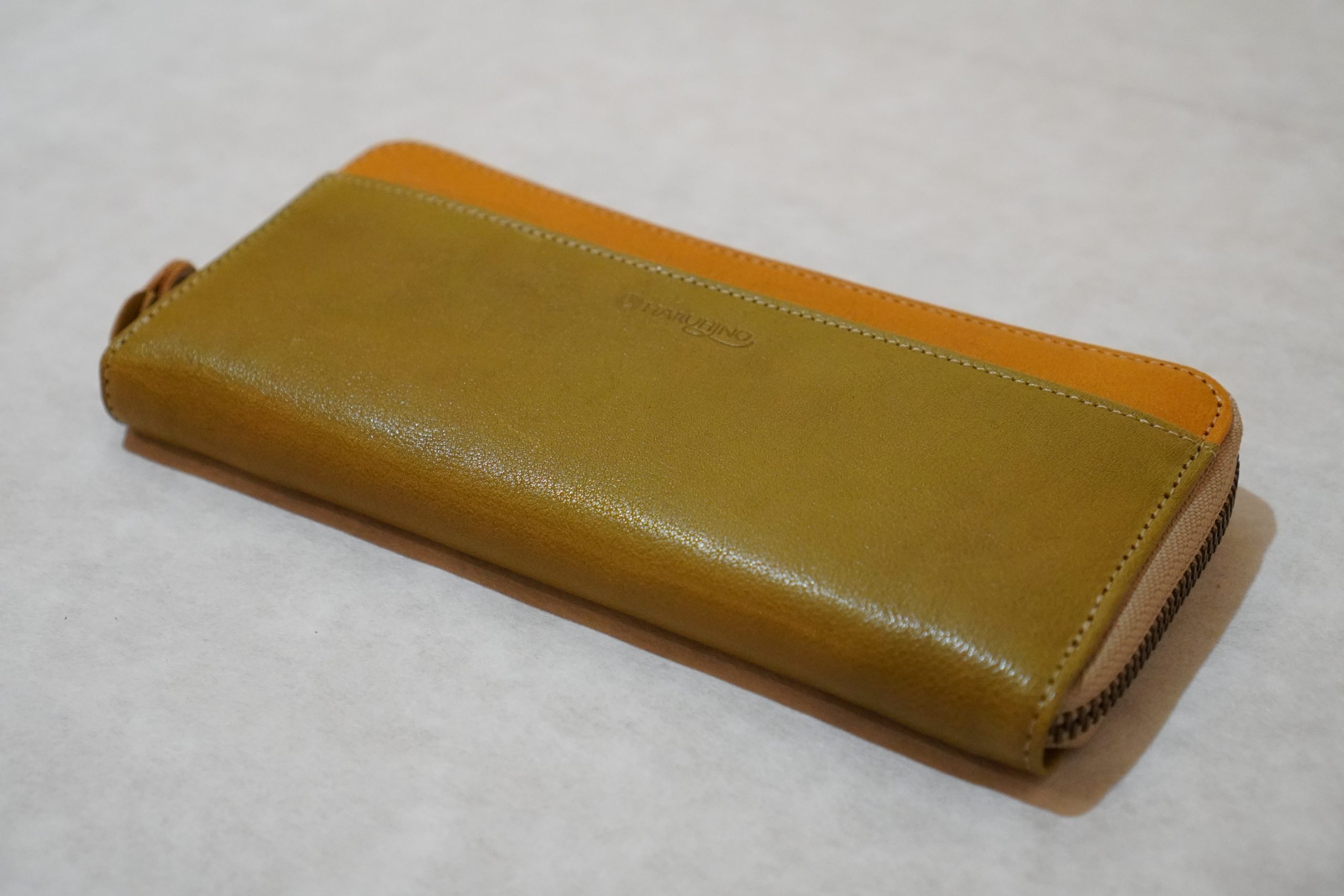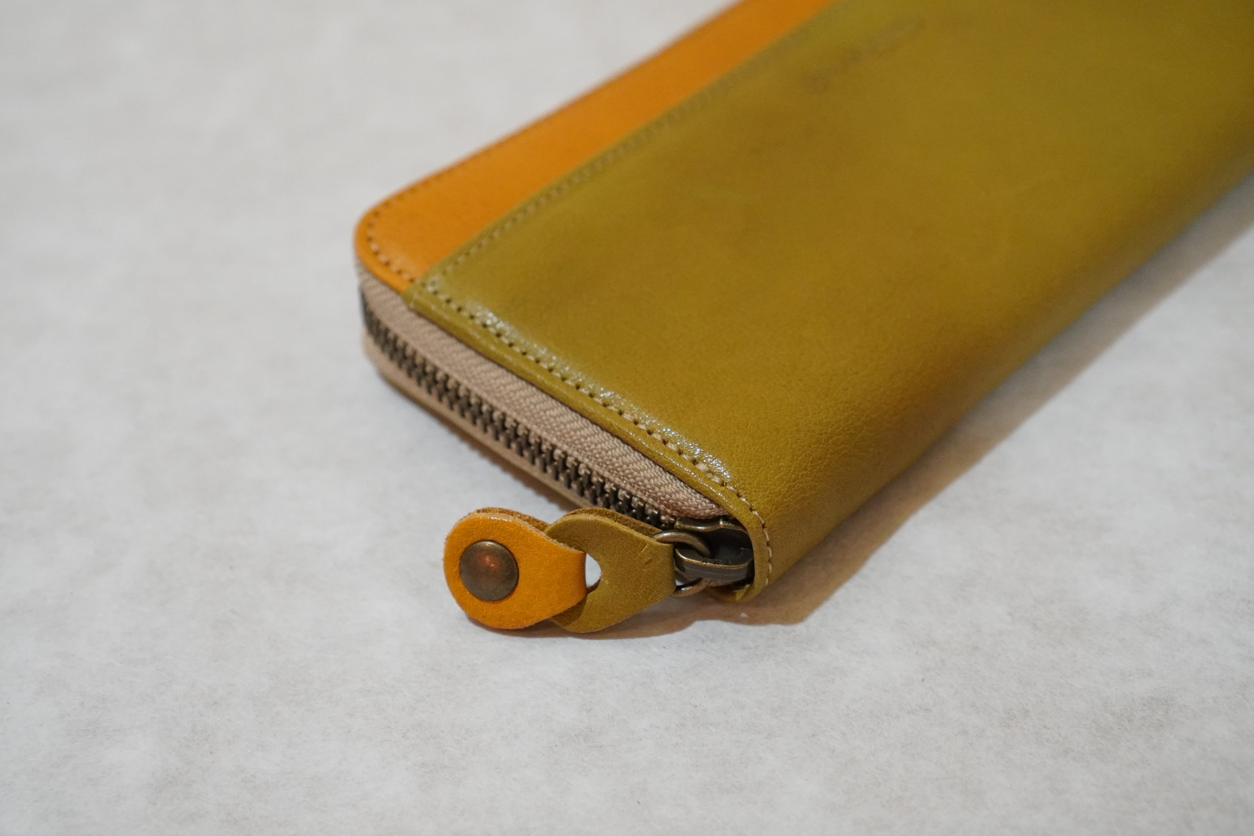 ラウンドファスナー長財布。上質なヌメ革(牛)を使用した手作り商品です。