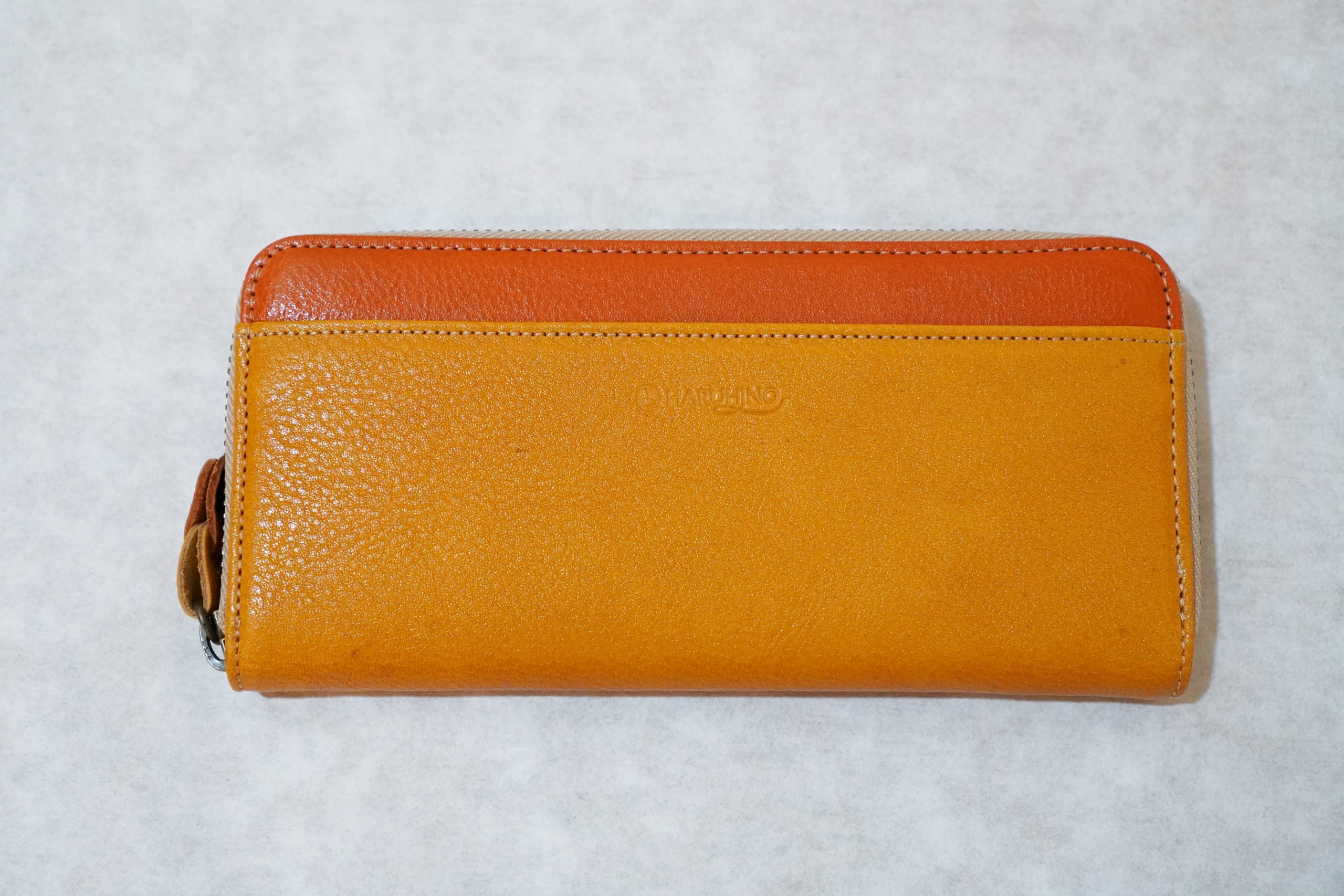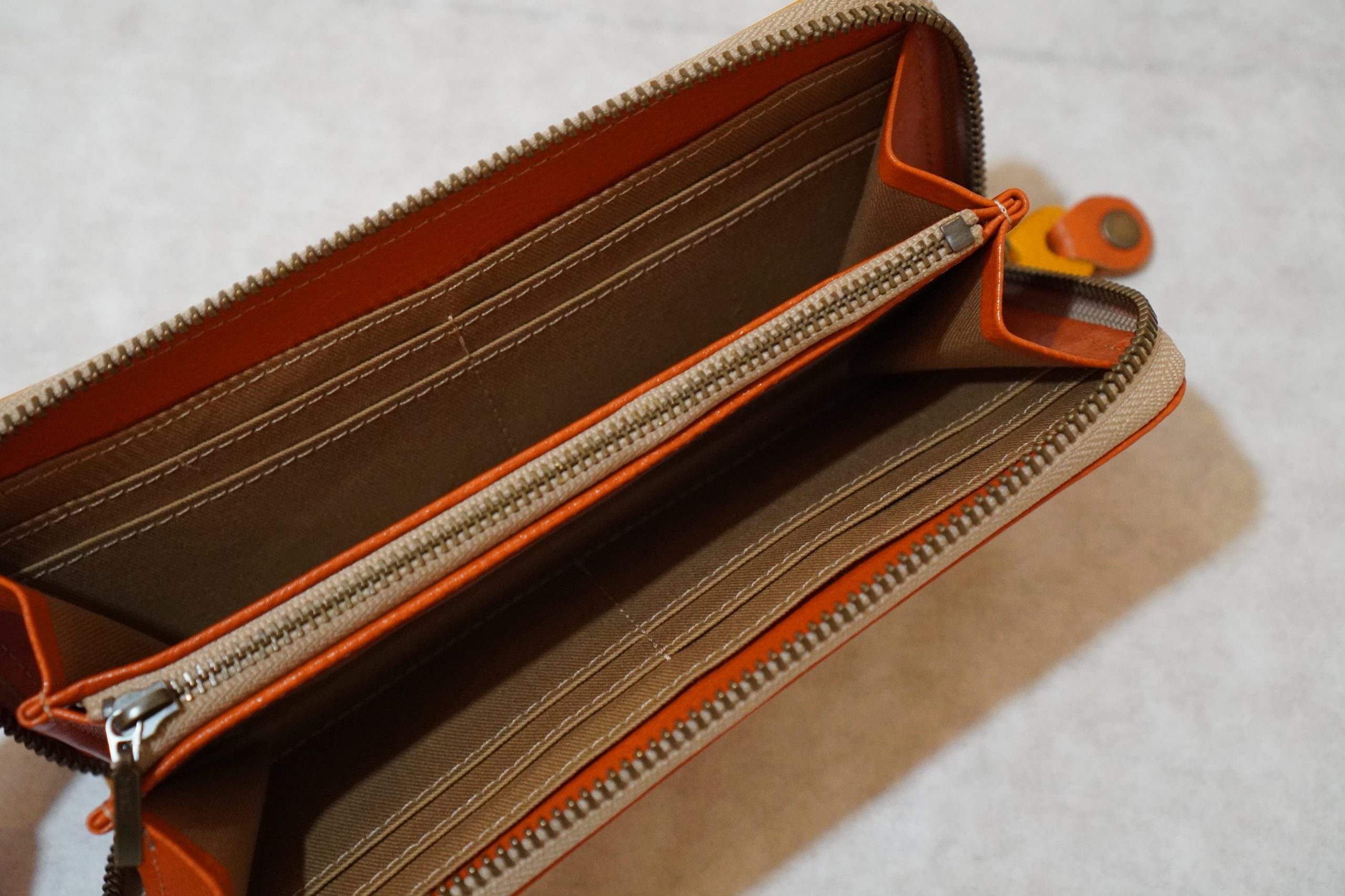 ラウンドファスナー長財布。上質なヌメ革(牛)を使用した手作り商品です。